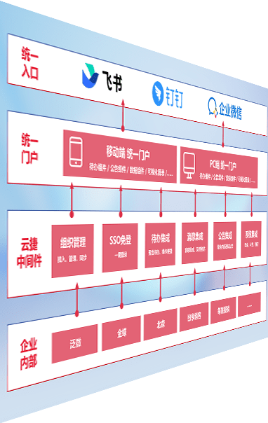 对协作平台提供支持服务,,,支持企业应用与协作平台对接,,,包含组织同步、、消息集成、、、待办集成等。。支持目前主流的协作平台:钉钉、、、企微和飞书。。。